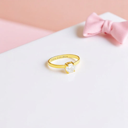 925 Ayar Gümüş Bebek Hatıra Yüzüğü, Bebek Tektaş Yüzük, Bebek Yüzük Altın Kaplama, Kız Bebek Yüzüğü