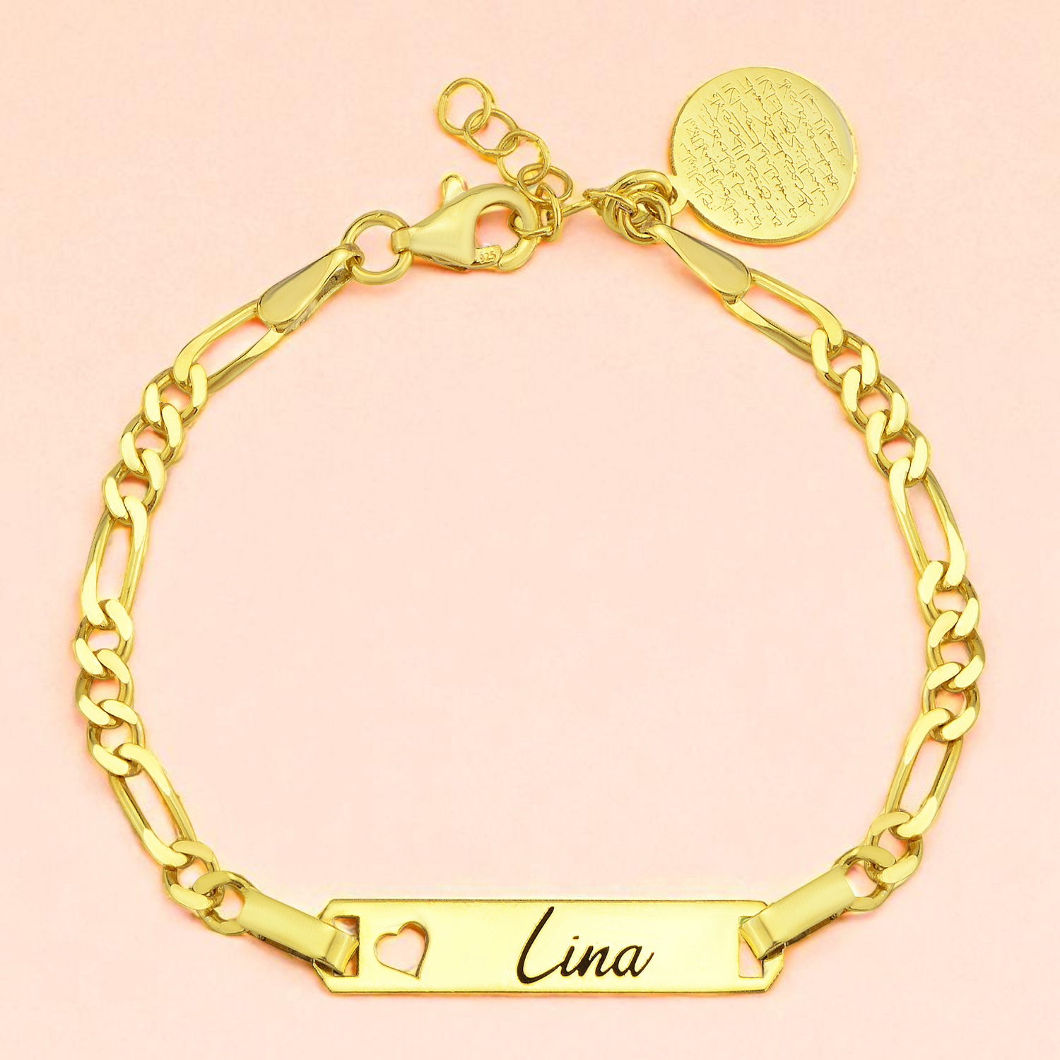 Ayetel Kürsi Dualı 925 Ayar Gümüş Kalp Motifli İsimli Kız Bebek Künyesi