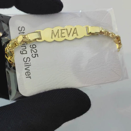 925 Ayar Gümüş İsimli Kız Çocuk Bileklik, Kız Bebek Bileklik Altın Kaplama, Kız Bebek Künyesi
