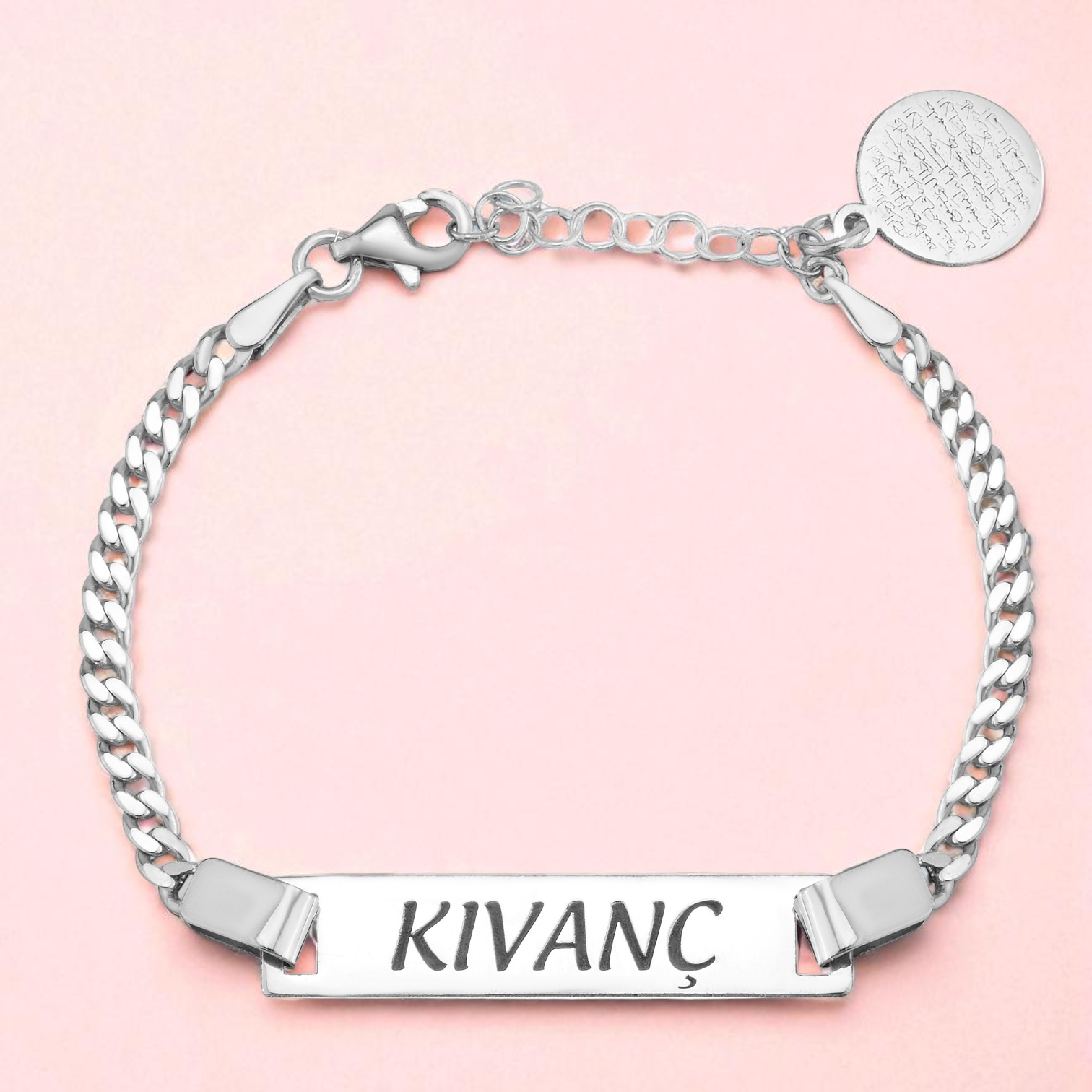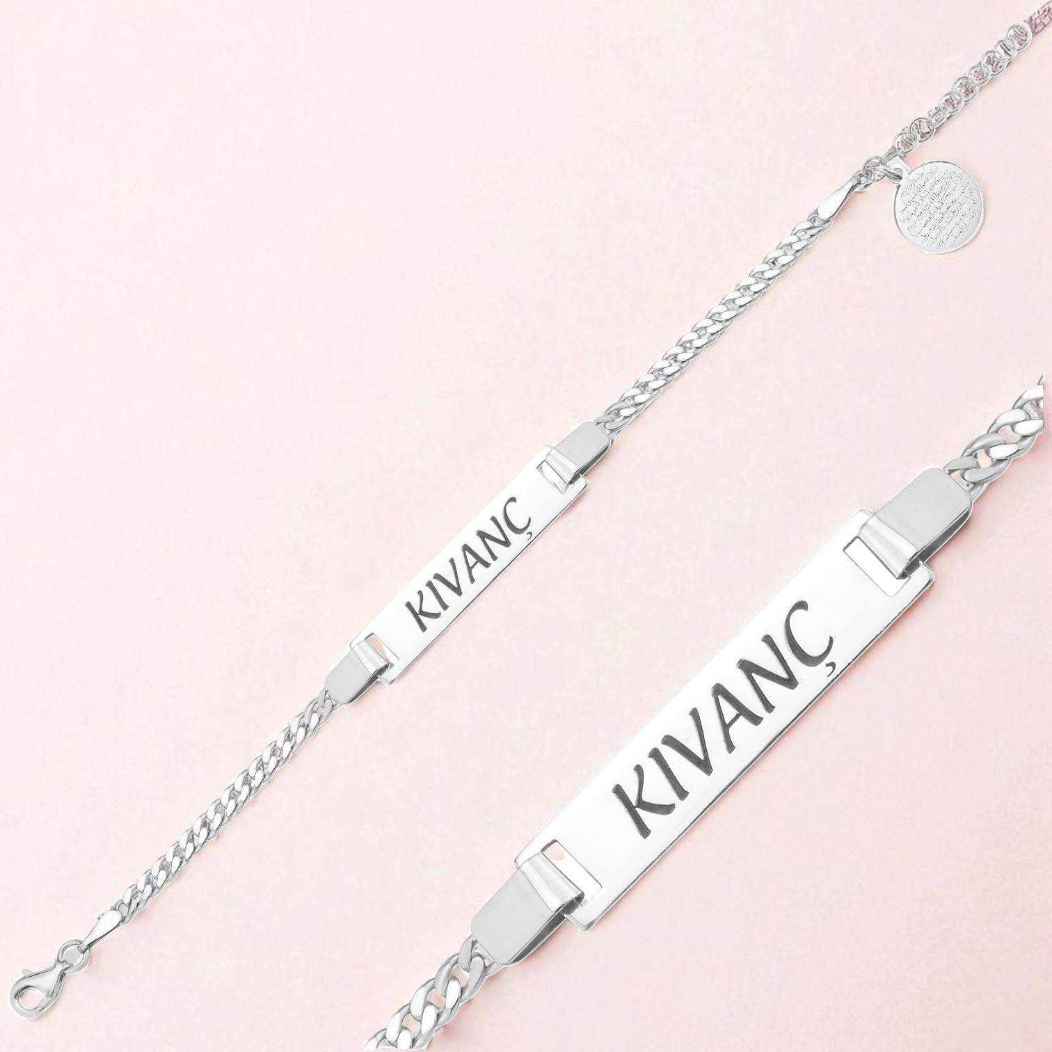 Ayetel Kürsi Dualı 925 Ayar Gümüş Erkek Bebek Künyesi