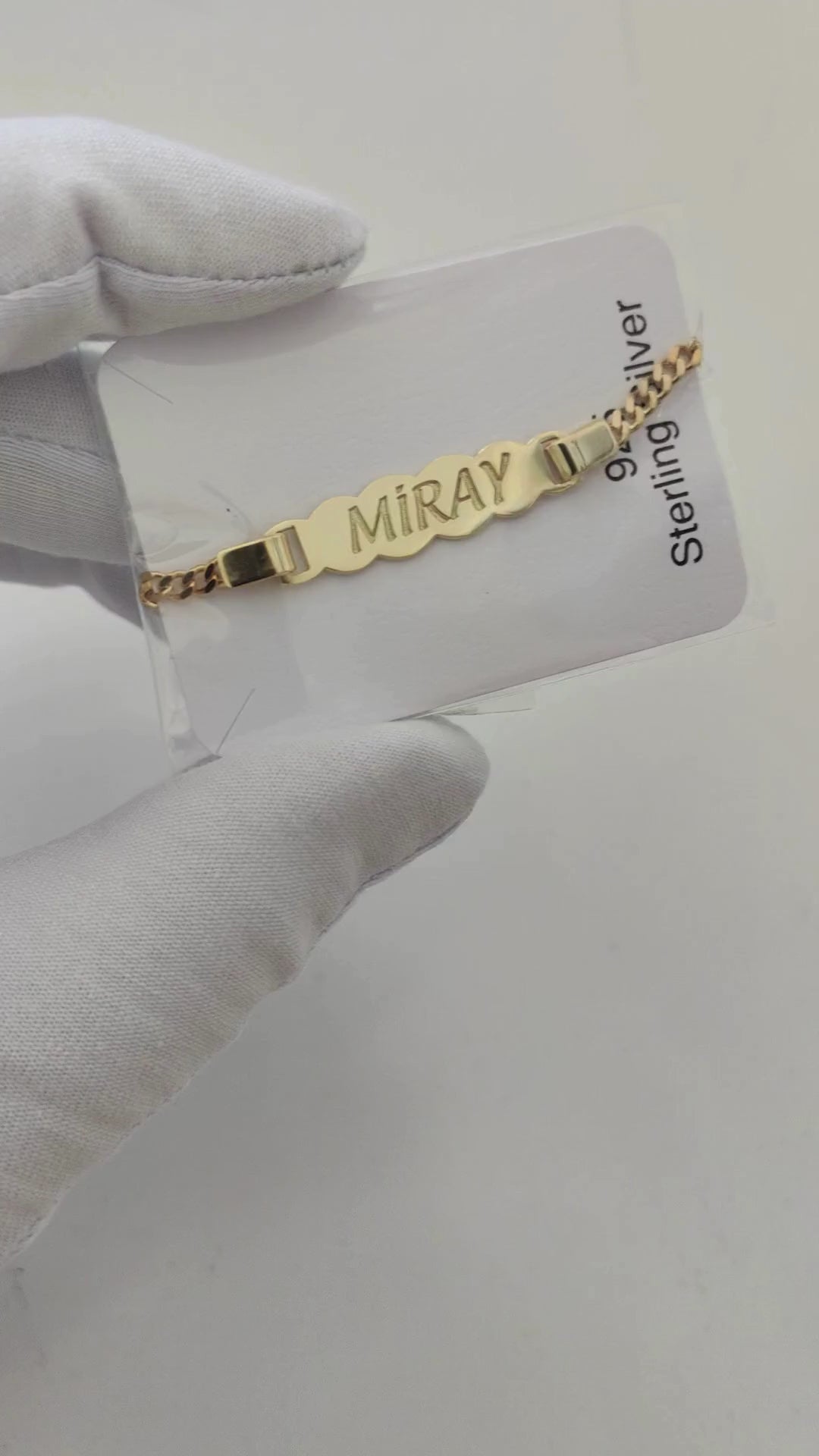 925 Ayar Gümüş Bebek Künyesi, İsimli Bebek Künyesi, Kız Bebek Künyesi 14 Ayar Altın Kaplama