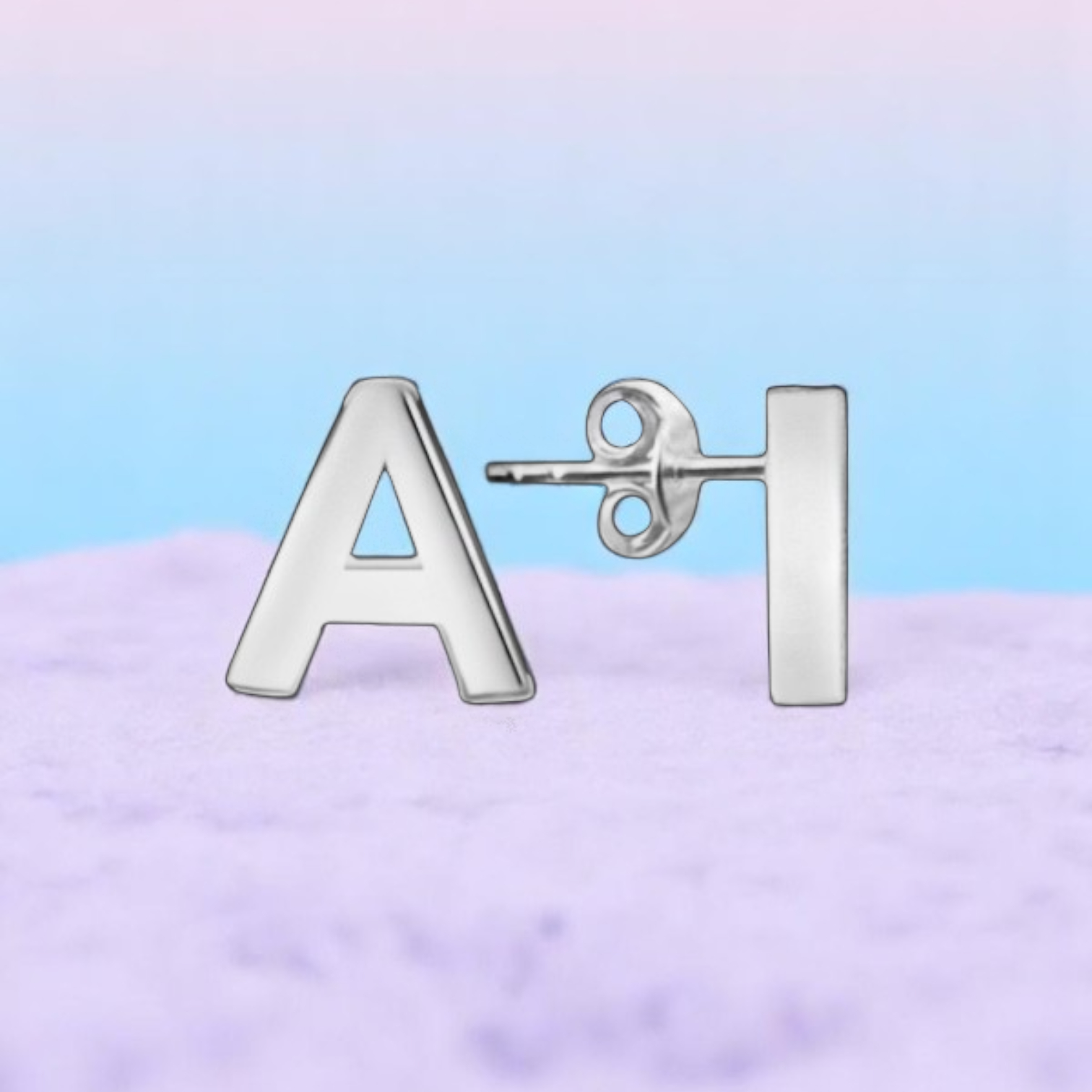Kişiye Özel Harfli 925 Ayar Gümüş Çivi Model Kız Çocuk Küpesi