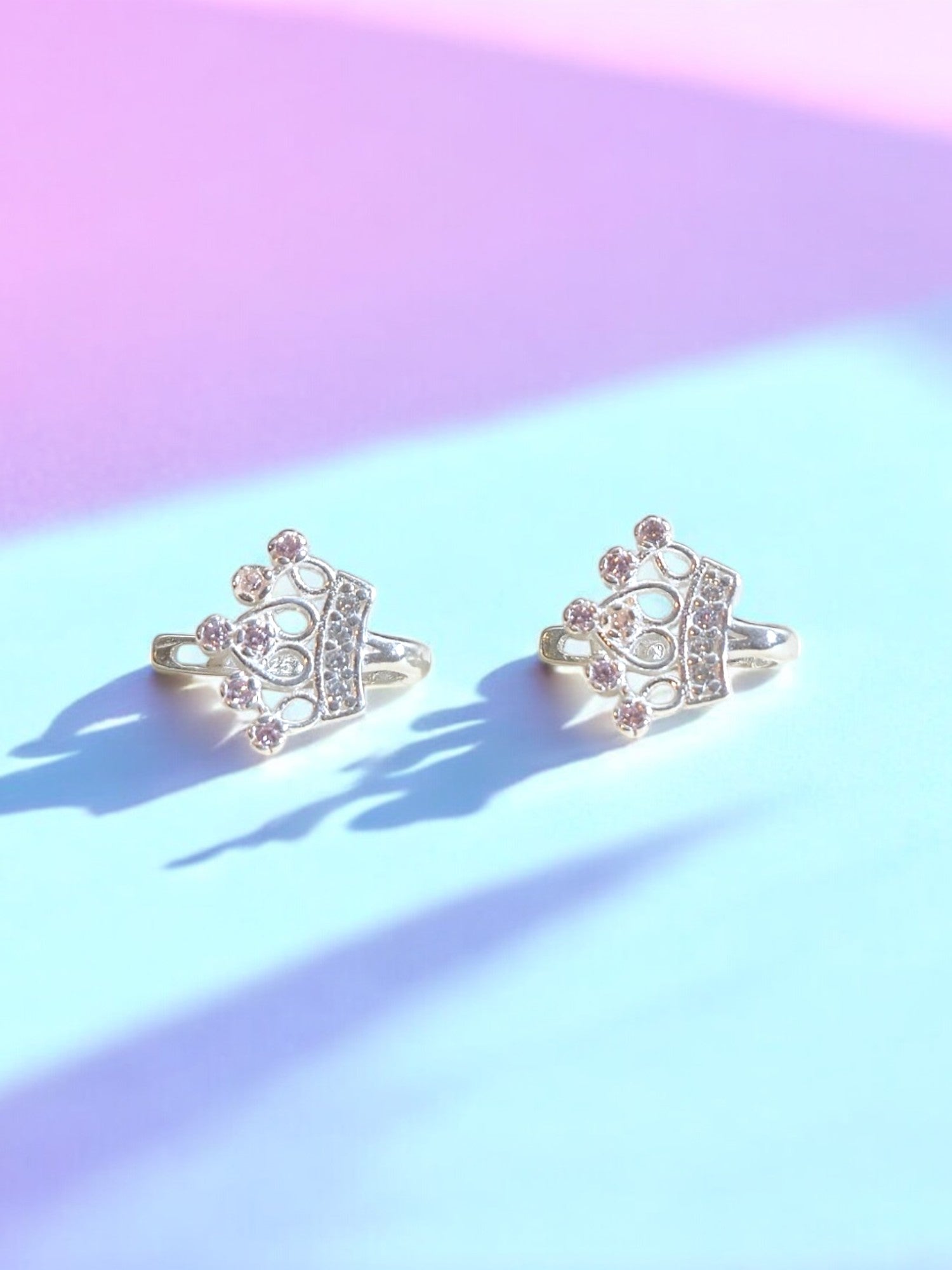 Zirkon Taşlı Prenses Tacı Gümüş Çocuk Küpe